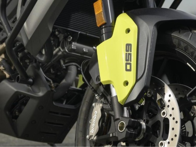 Safety and stability are paramount, the SVT 650 comes equipped with dual channel ABS hydraulic disc brakes courtesy of Brembo —Radial 4 piston calipers biting dual 320mm discs at the front and a single caliper on a 260mm disc at the rear.The adjustable Marzocchi suspension comprising of a pair of 43mm USD front forks paired with a rear mono-shock ensures comfort, control and remarkable handling, even on rugged terrain.